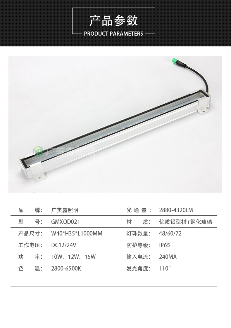 Special service  | Two years warranty, damage replacement  | Power  | 10,12,15(W)  | Light color  | RGB colorful, DMX512 external control, support customization, need 0.5 m specifications, please contact customer service  |