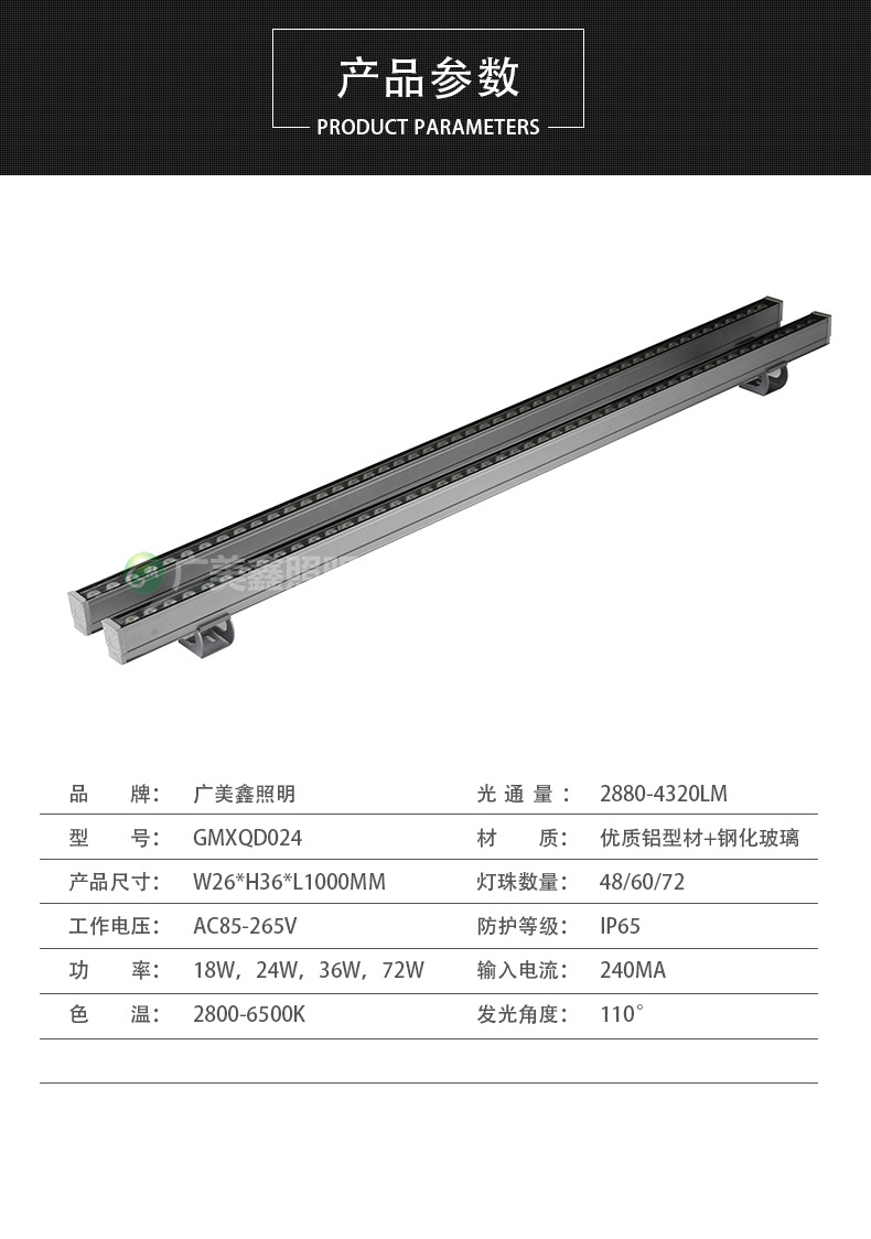 Special service  | Two years warranty, damage replacement  | Power  | 18,24,36,72, custom can contact customer service(W)  | Light color  | RGB external control colorful, DMX512 external control  |