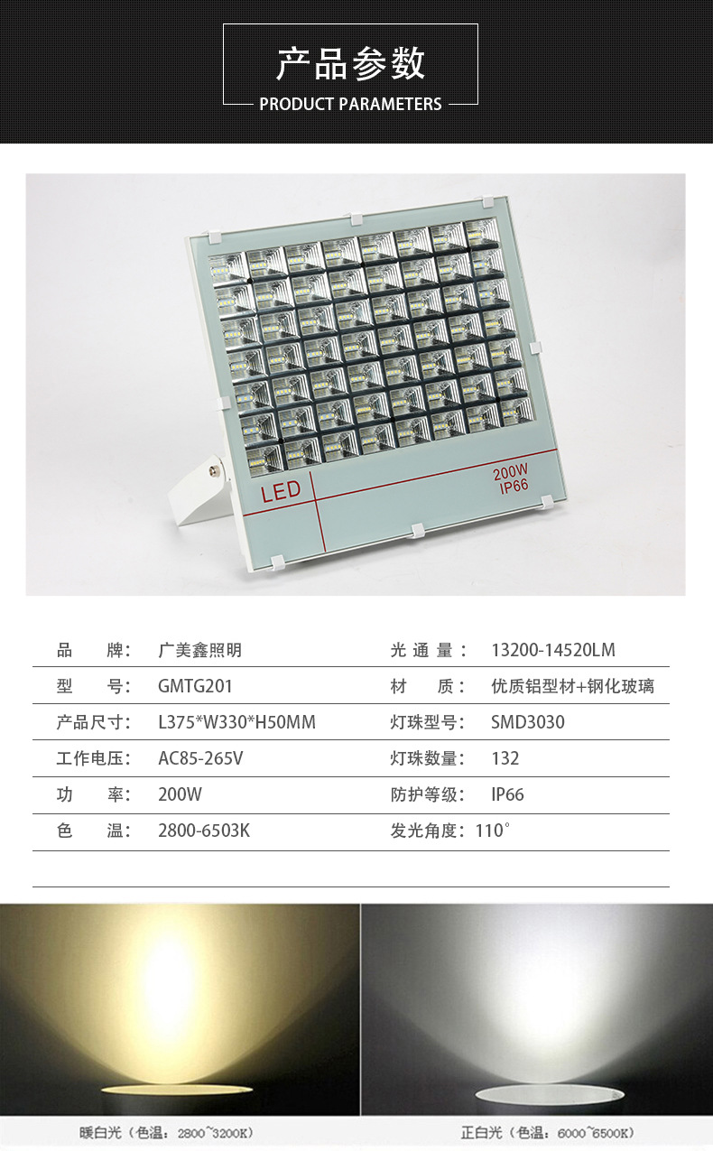 Whether cross-border supply  | no  | Color temperature  | 2800-6500K  | Series  | LED flood light  |