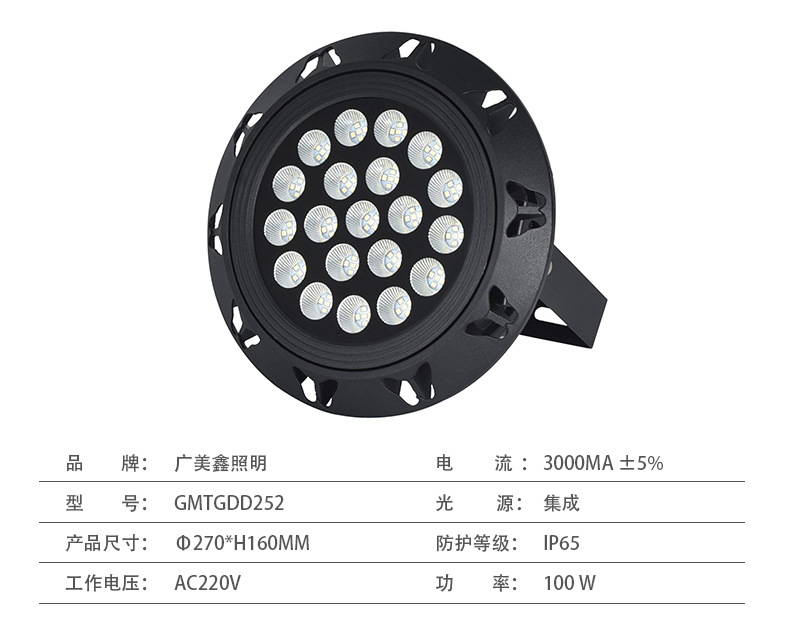 Scope of use  | Parks, squares, buildings, hotels, scenic spots, lakes, communities, etc.;  | Special service  | Two years warranty, damage replacement  | Product specifications  | GMTGDD252 100w,GMTGDD253 150w,GMTGDD254 200w,GMTGDD255 250w,GMTGDD248 100w,GMTGDD249 150w,GMTGDD250 200w,GMTGDD251 250w  |