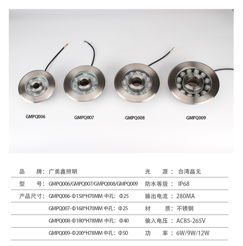 Scope of use  | Fountain swimming pool landscape fish pond  | Special service  | Damage repair  | Light color  | Warm white, white, cool white, yellow, red, blue, green, RGB  |