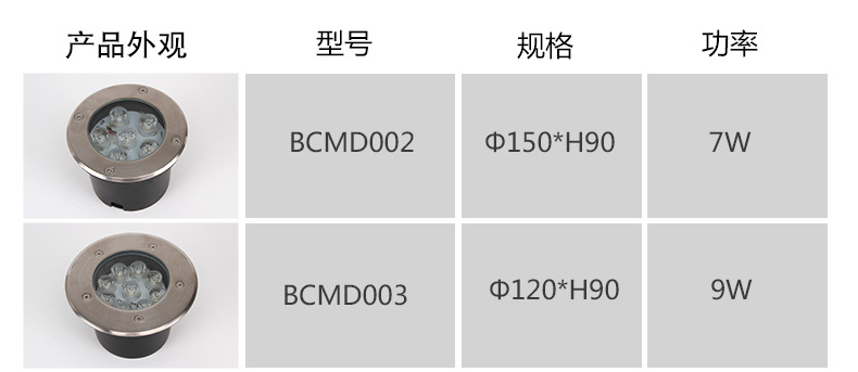 Model  | BCMD001  | Types of  | Square buried light  | Protection level  | IP65  |