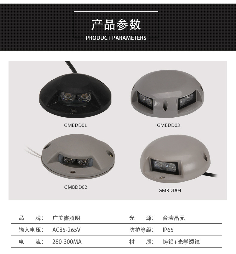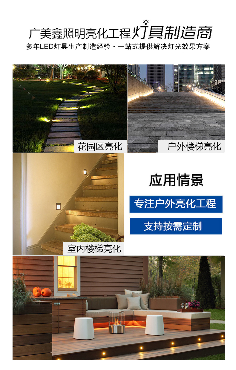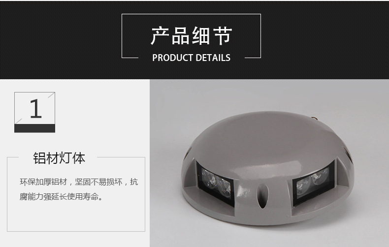 Shell material  | Aluminum alloy  | Weight  | 200(g)  | Scope of use  | Stairs corner lawn plaza  |