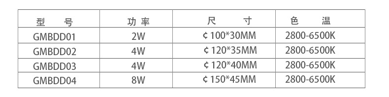 Special service  | Quality assurance  | Light color  | Warm white, white, cool white  | Power  | 2W, a light, 4W two light, 4W four light, 8W four light  |