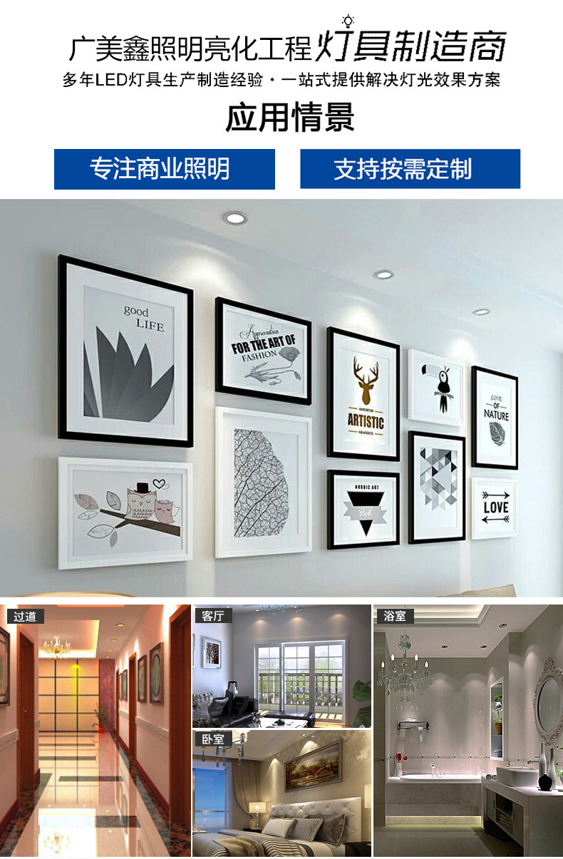 Beam angle  | 30/60(°)  | Packaging process  | COB  | Scope of use  | Home, shopping, office, office, restaurant, bar, hotel, etc.  |