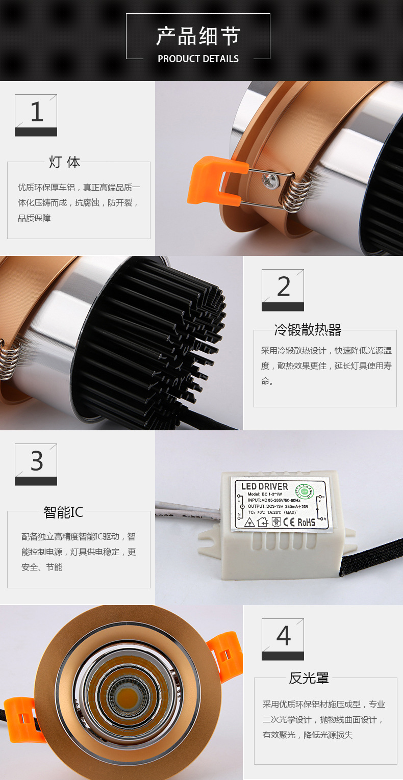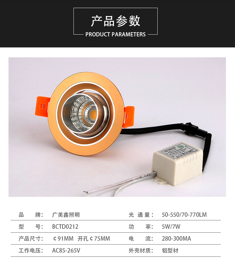 Whether cross-border supply  | No  | series  | LED downlight  | colour  | Gold  |