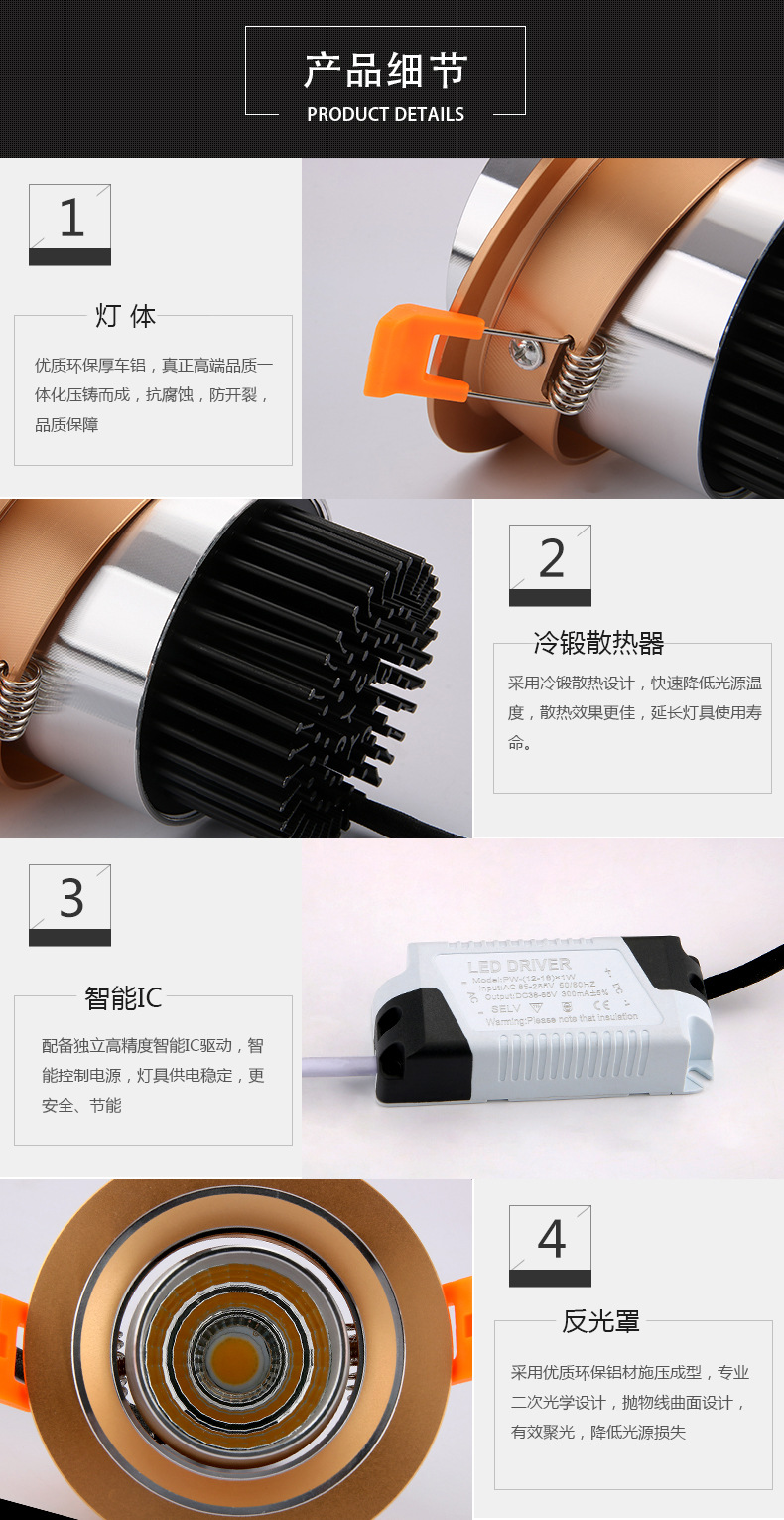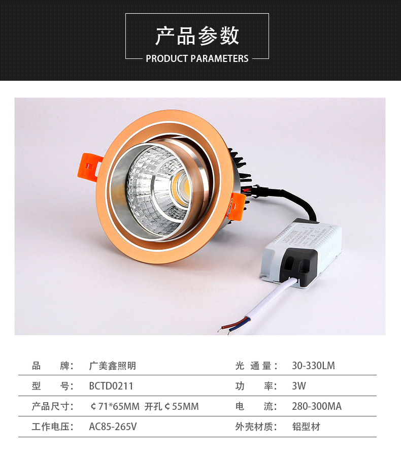 Whether cross-border supply  | No  | series  | LED downlight  | colour  | Gold  |