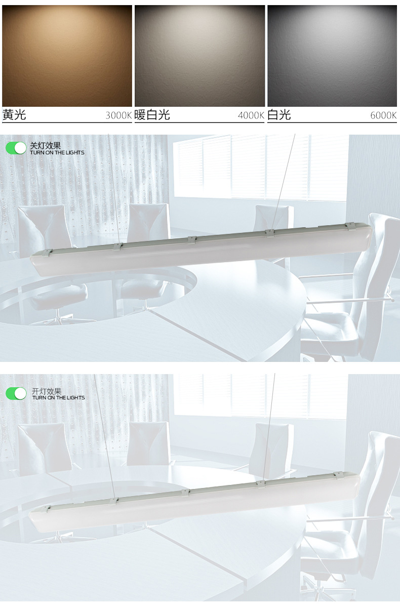 3000K (warm white), 4000K (white), 6500K (cold white)