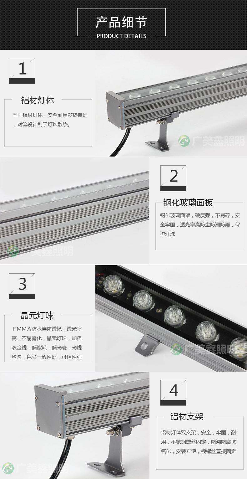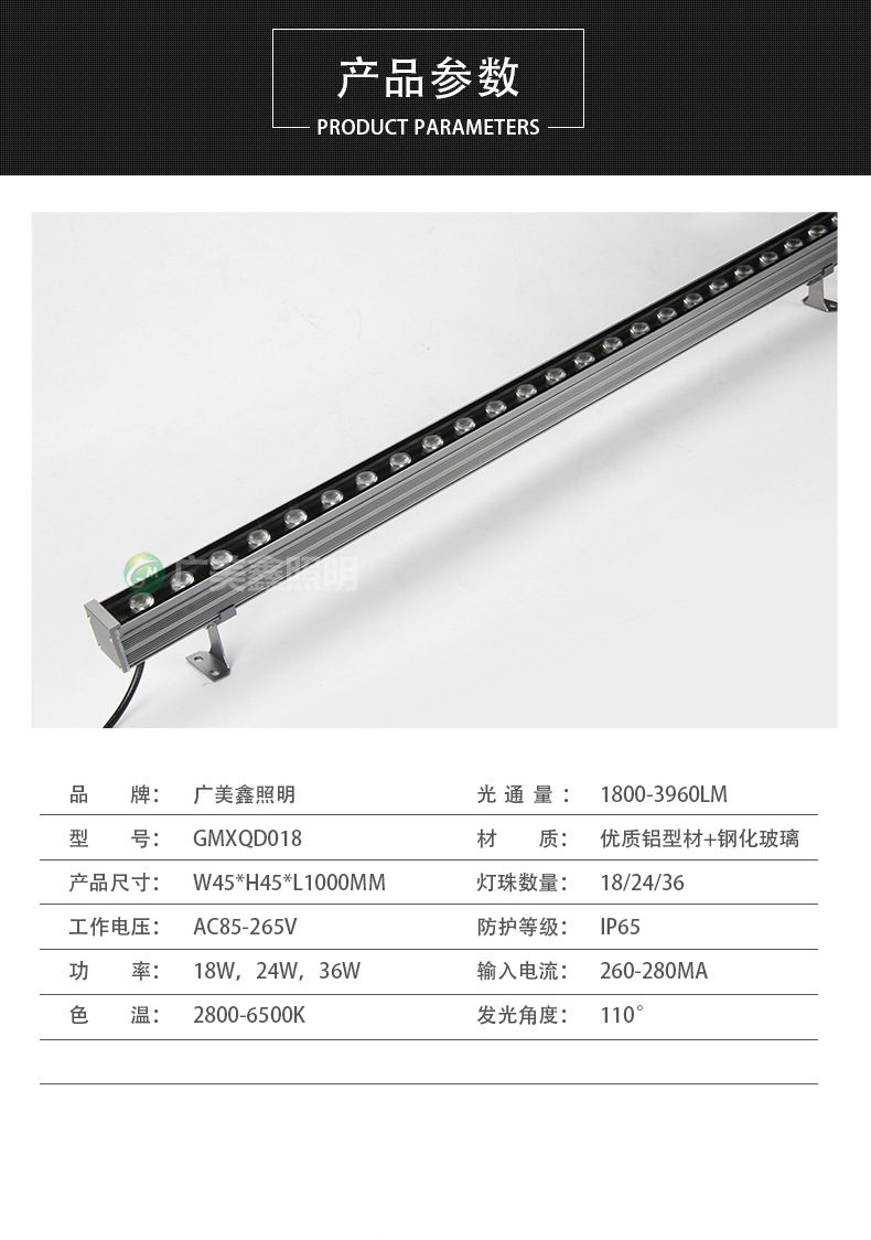 特色服務質保兩年,破損補發功率18,24(W)燈光顏色單色,七彩,RGB外控,DMX512