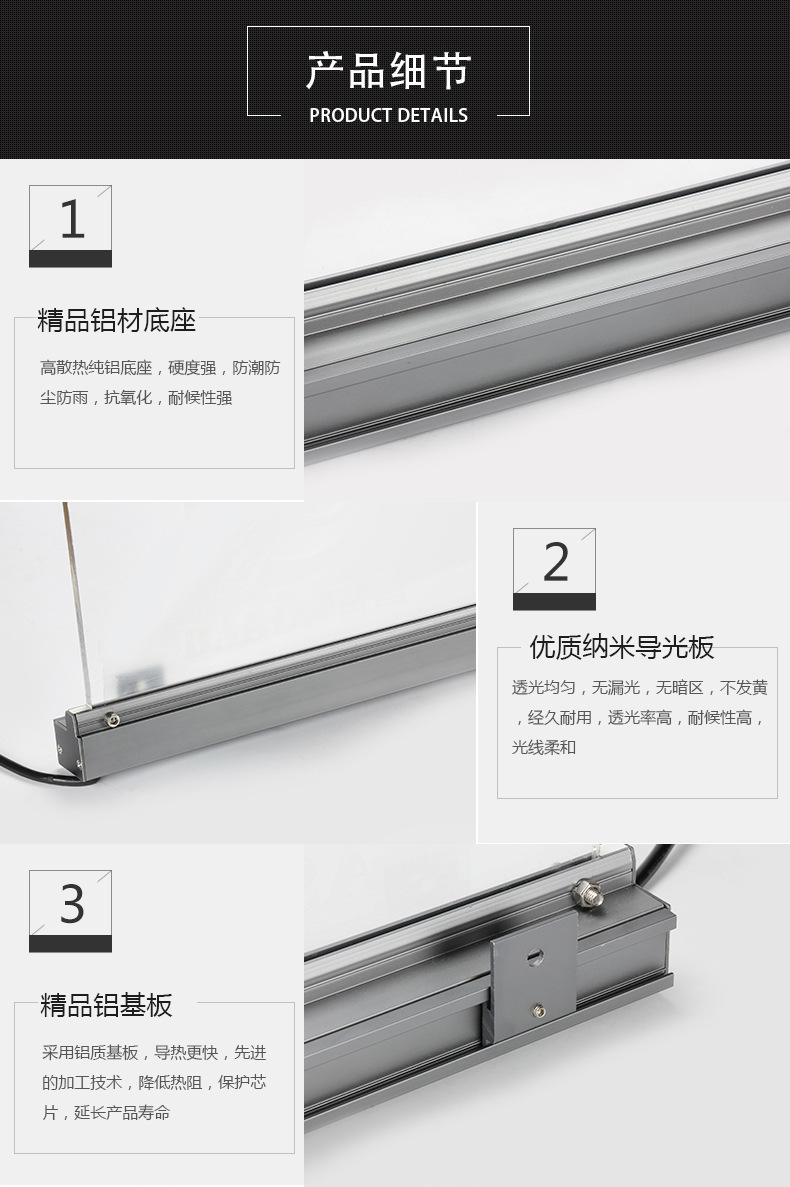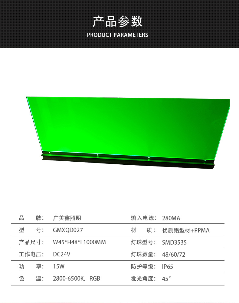| 型號 | GMXQD027 | 厚度 | W45*H48*L1000(mm) | 主體材質 | 鋁型材+PMMA |