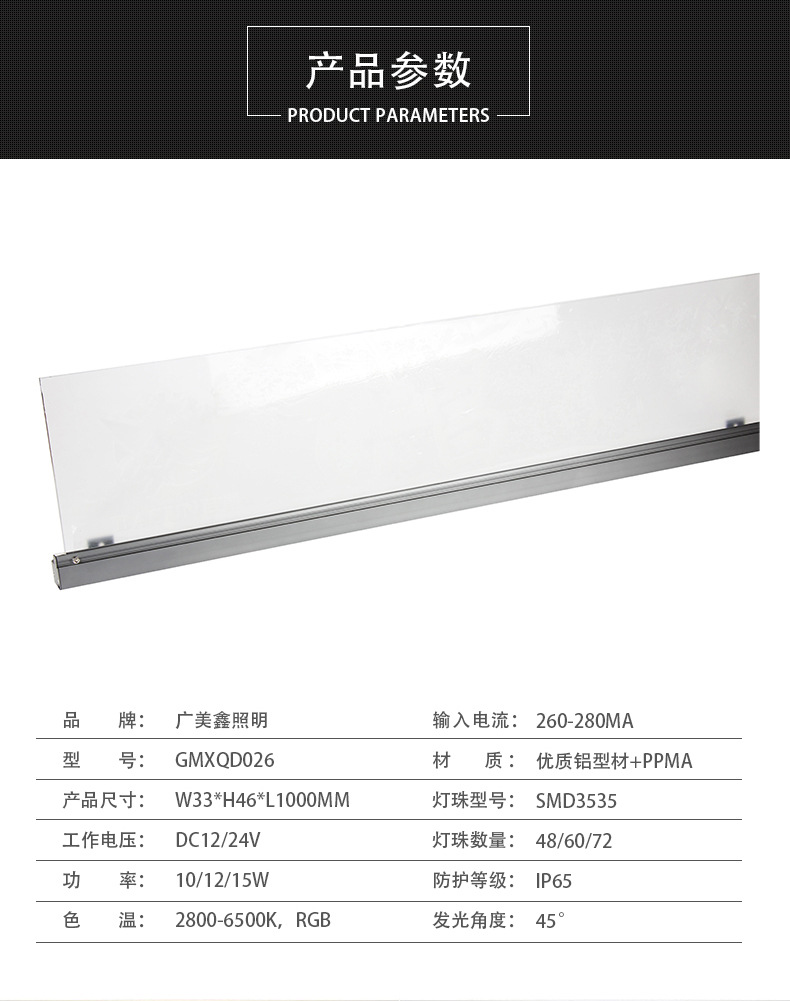 型號  | GMXQD026  | 厚度  | W65*L1000(mm)  | 主體材質  | 鋁型材+PMMA  |