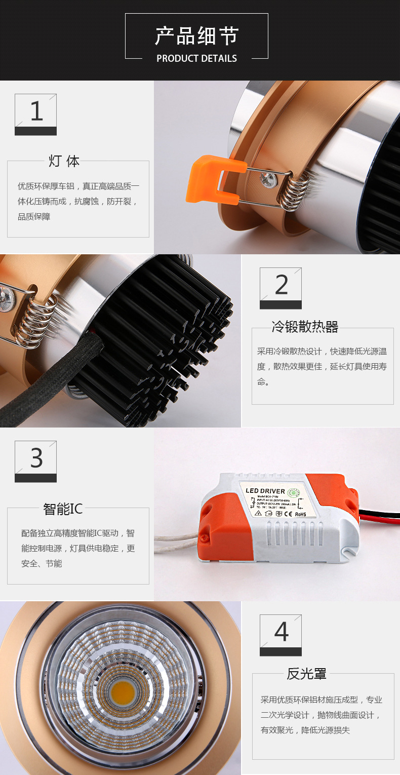 | 發(fā)光角度 | 30/60(度) | 封裝工藝 | COB | 用途范圍 | 家居、商場、辦公、寫字樓、餐廳、酒吧、酒店等 |